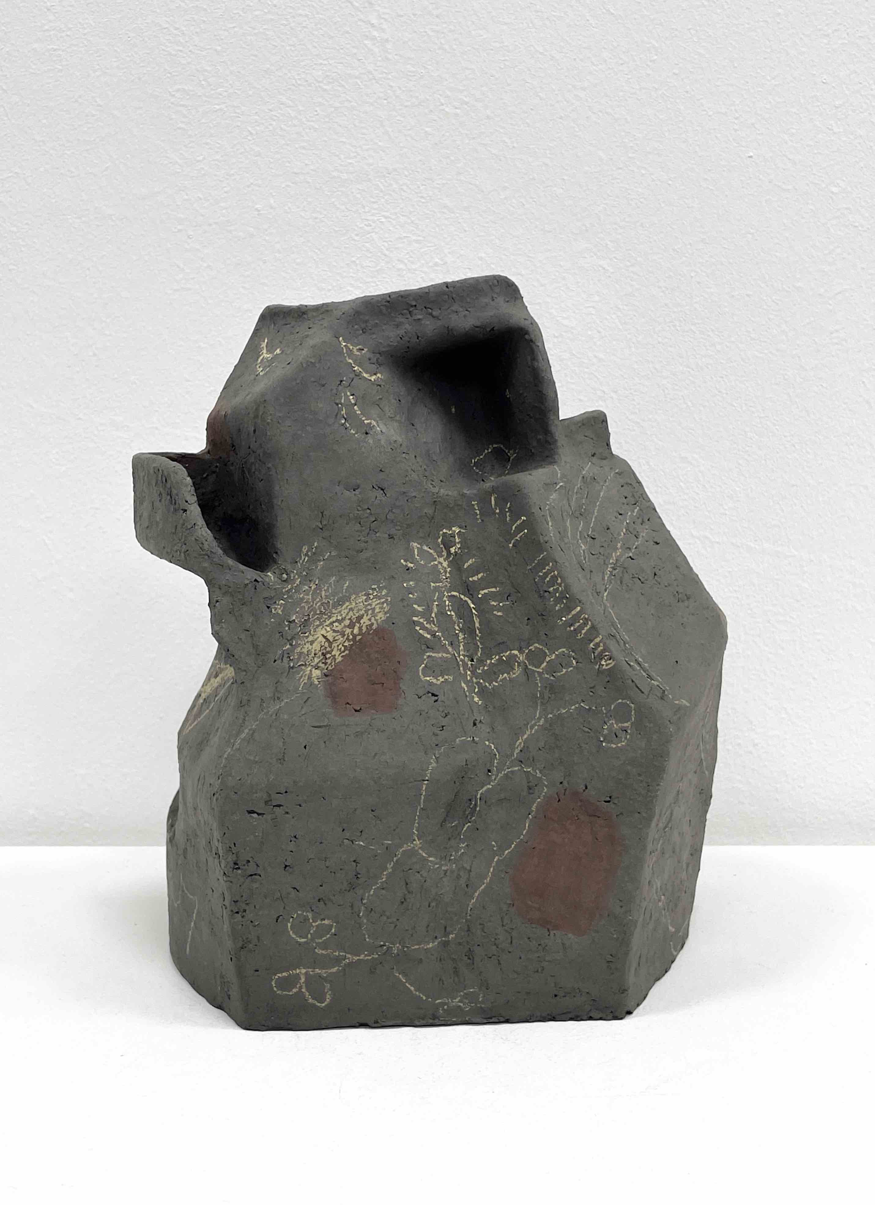 Created in a meditative state of mind, the sculpture celebrates the act of mindless scribbling. The marks became permanent after being fired in the kiln. Like dreaming, scribbling reveals some of our subconscious thoughts and emotions. It relaxes our mind and prepares us for the “click” that’s about to happen.