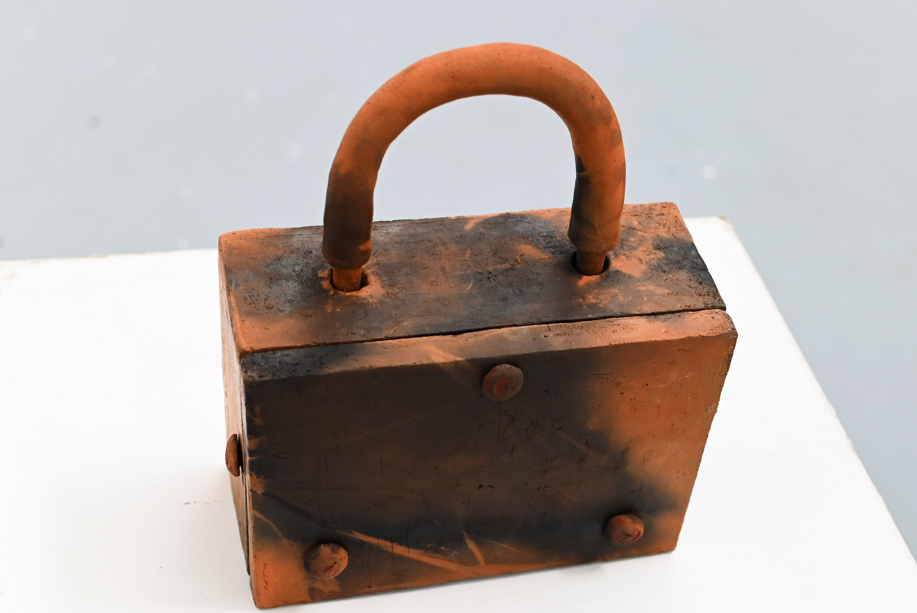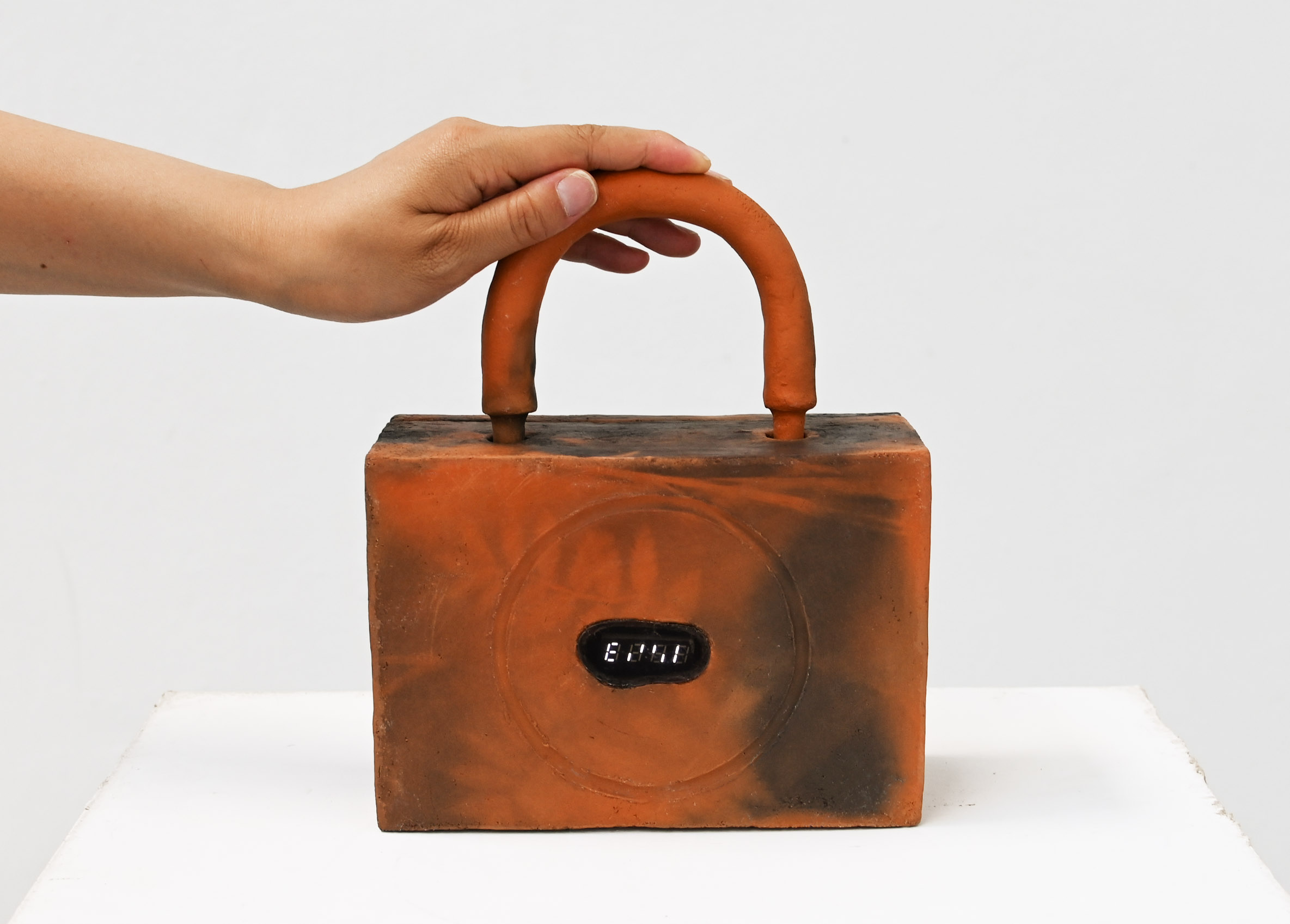The artist made a random number generator with clay and electronic parts to perform security rituals on people or things, hoping to offer a sense of security in all kinds of situations in life. The 7-segment display on the device shows inverted numbers to help the visitors focus on the spiritual aspects of the random numbers.