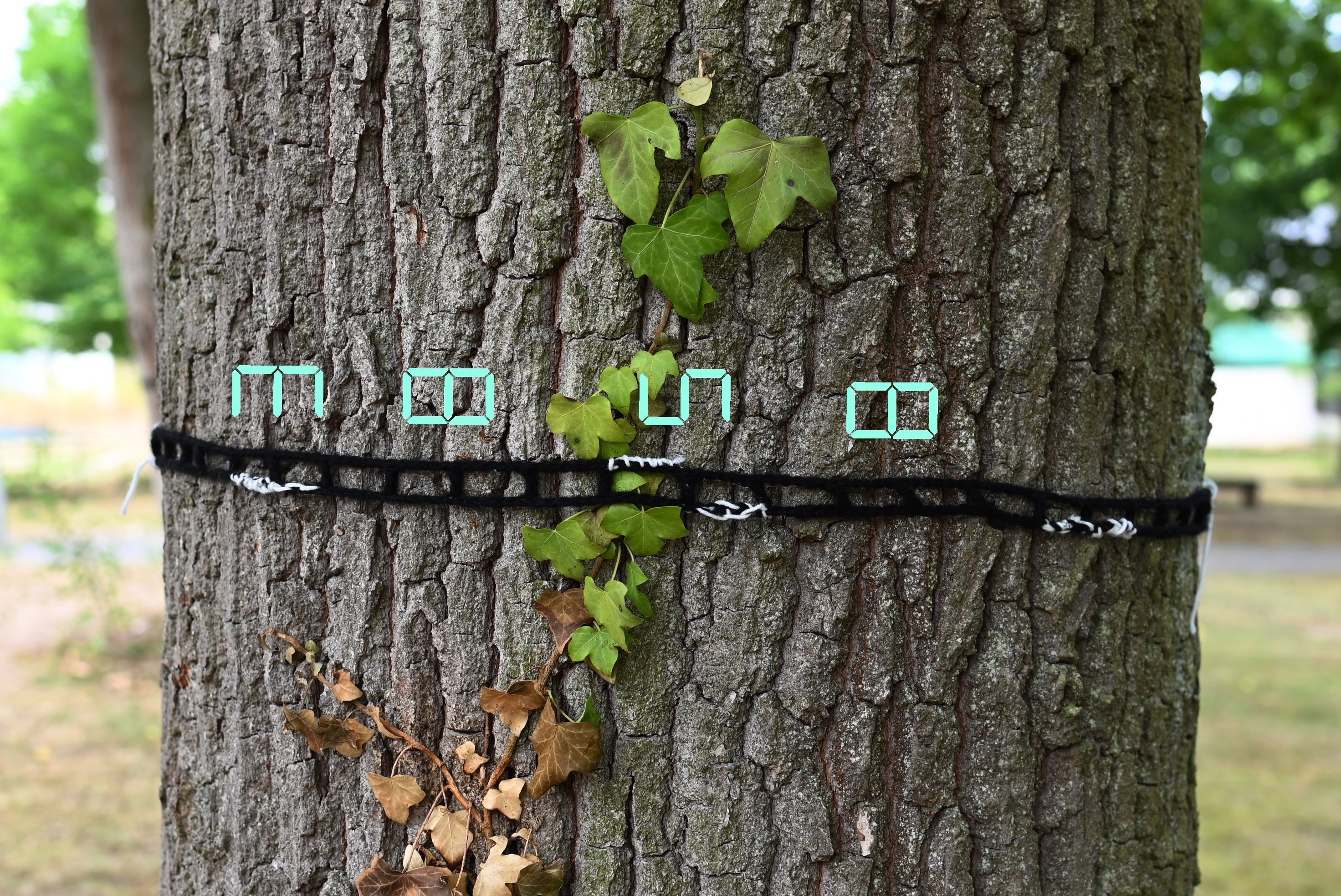 The surrounding trees are also secured and marked with crocheted bands.
